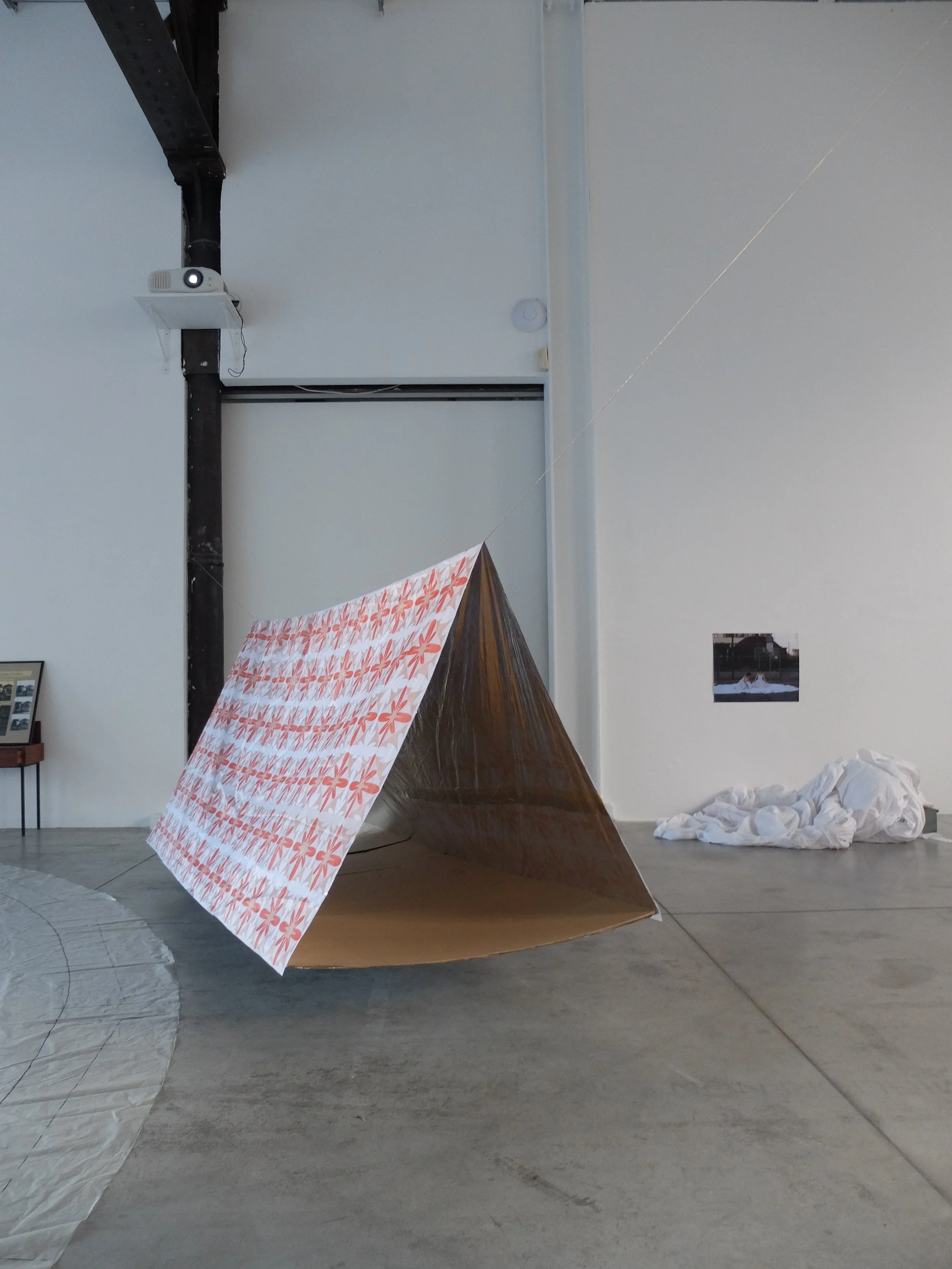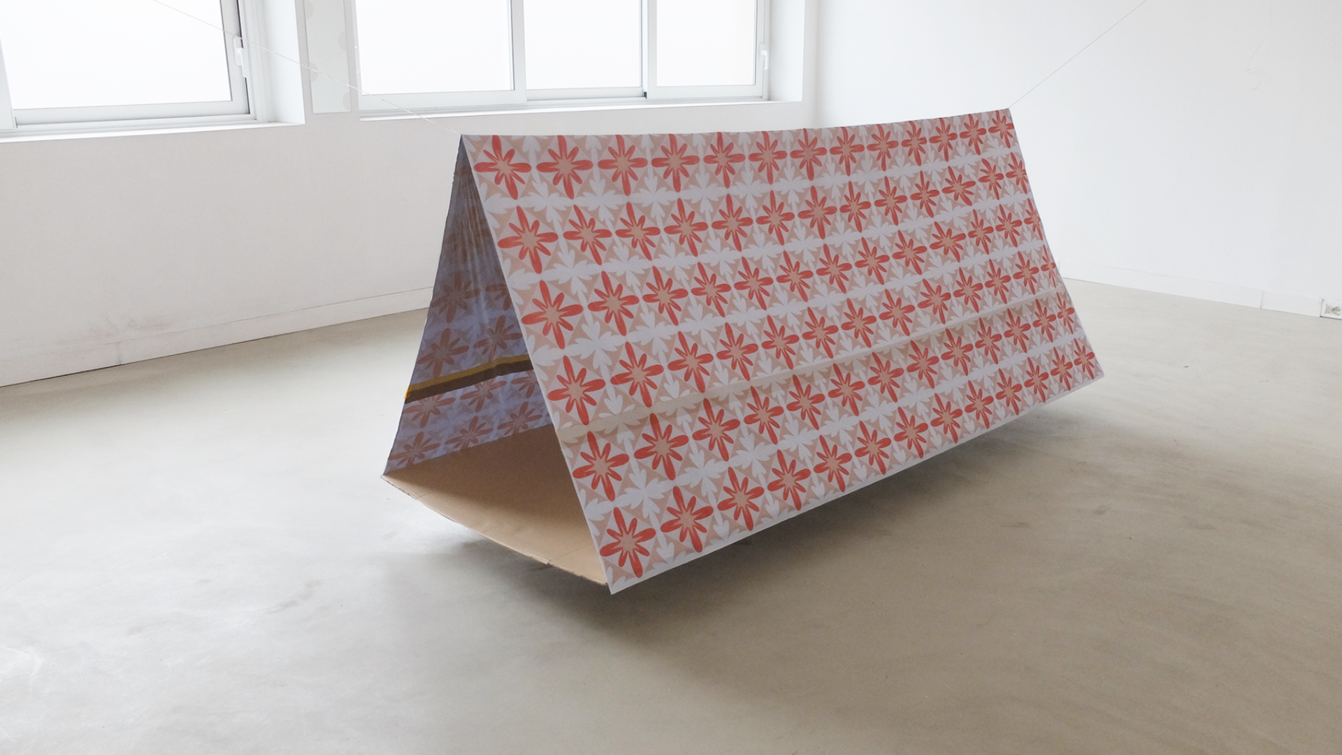 Rifugio è realizzato con una tenda di emergenza termoisolante e impermeabile, vestita da un pattern decorativo, la piastrella viene esposta per mostrare, la luce led amplifica il segnale di emergenza lanciato alla città. Un rifugio urbano collocato in diversi punti della città costituisce una sorta di Terzo Paesaggio provocando un cortocircuito visivo atto a smuovere la massa umana dal torpore diurno.